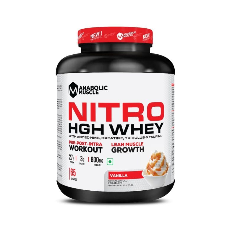 Nitro HGH Whey from Anabolic Muscle: a cutting-edge protein supplement delivering 27gm of premium protein per 35gm serving. It includes 3gm of Creapure for enhanced strength, 500mg of HMB for lean muscle development, and boosts testosterone and HGH levels naturally with D-Aspartic Acid, Tribulus Terrestris, and Mucuna Pruriens. Ideal for athletes and fitness enthusiasts seeking peak performance and a sculpted physique.