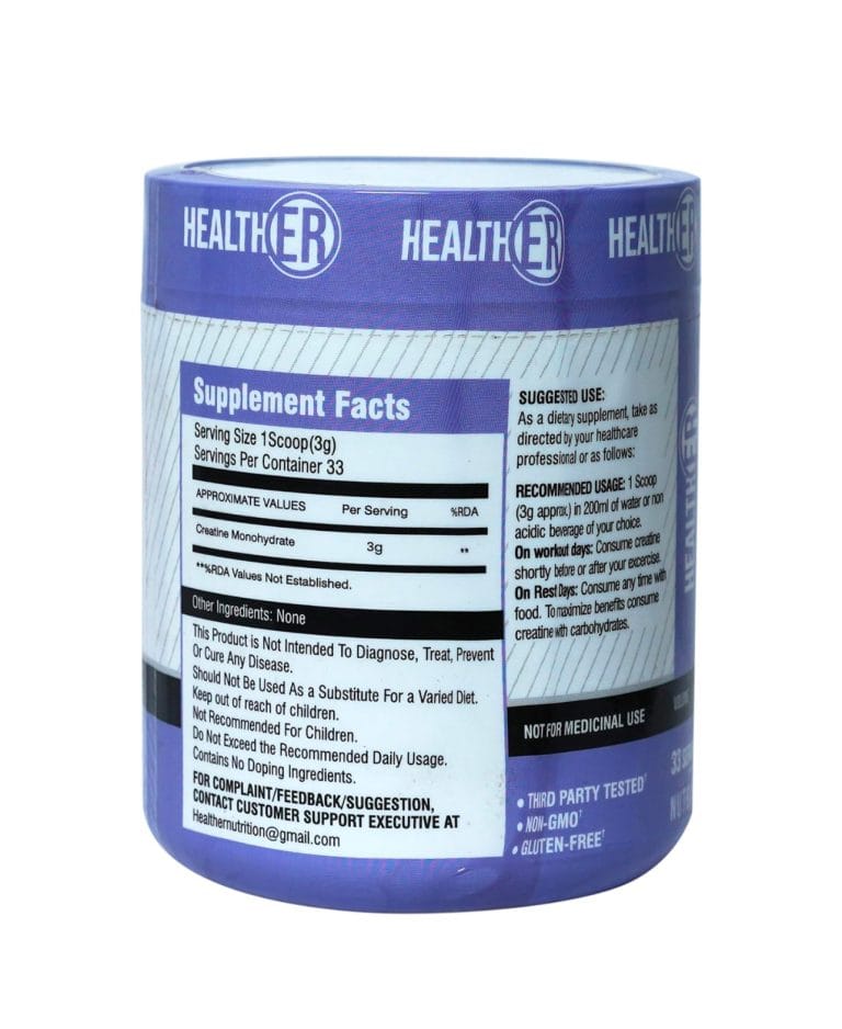 Trusted HealthER Quality: Choose HealthER for a trustworthy creatine supplement backed by quality assurance, designed to meet the demands of athletes and fitness enthusiasts striving for excellence. Proudly Made in India.