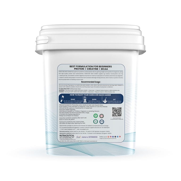 To ensure the quality of Hardcore Mass Gainer, ingredients are tested for purity before using in the Supplement. It is easy to digest and can be absorbed by the body instantly. GXN Hardcore Mass Gainer has high Protein/Carb ratio along with Creatine Monohydrate, L-Valine and Pure Veg Digestive Enzymes.