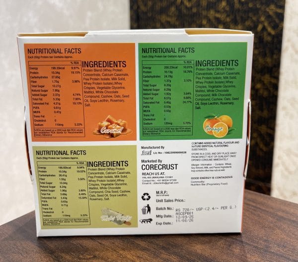 Core Crust high Quality premium protein bars 10 gm protein in one bar weight 50gm each bar pack of 6 bar
