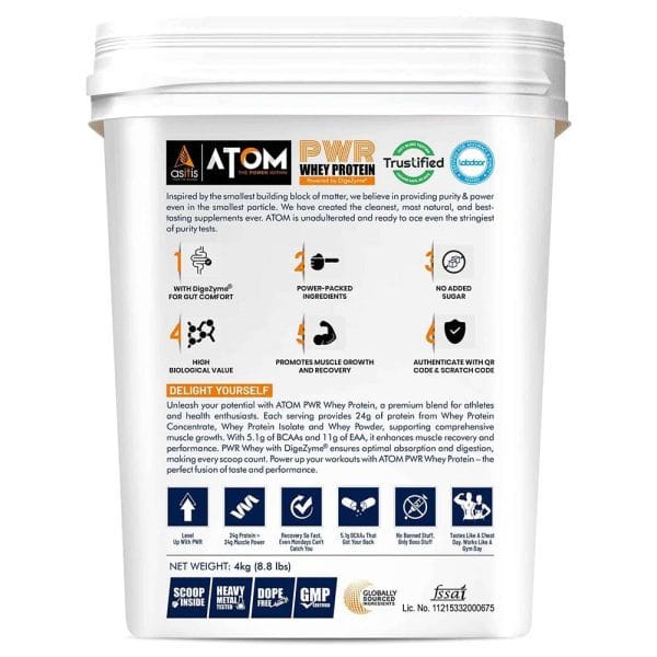 AS-IT-IS Nutrition ATOM POWER Whey Protein 24gm 4 kg Dark Rich Chocolate ( FREE DELIVERY )